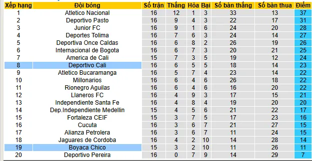 + Boyaca Chico thắng 8 hòa 2 thua 4 trong 14 trận gần nhất đón tiếp Deportivo Cali trên sân nhà.