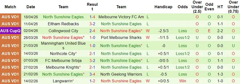 – Thống kê kết quả 10 trận gần nhất của North Sunshine