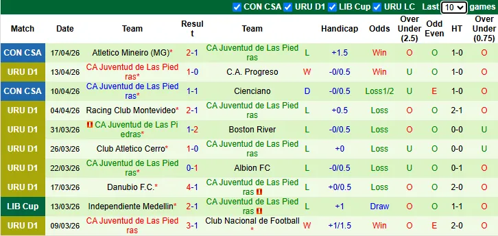 Thống kê phong độ 10 trận gần nhất của CA Juventud