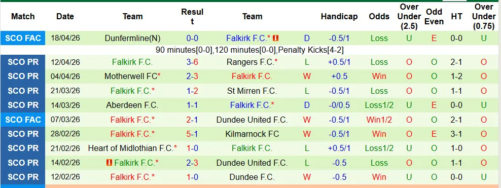 Thống kê phong độ 10 trận đấu gần nhất của Falkirk