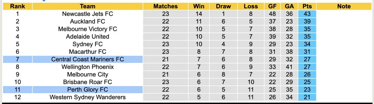 Nhận định bóng đá Central Coast Mariners với Perth Glory hôm nay