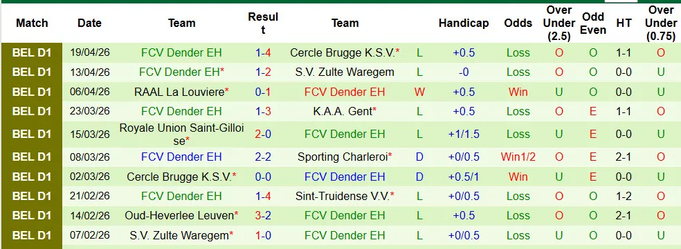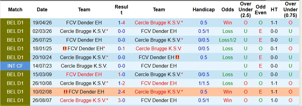 Cercle Brugge thắng kèo cả 4 trận đấu mới đây tại giải VĐQG Bỉ và bất bại kèo tới 10/15 trận đấu gần nhất tại mọi mặt trận. Dender thua kèo tới 8 trong số 11 trận đấu vừa rồi.