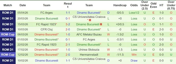 Dinamo Bucuresti lại cho thấy bức tranh trái ngược. Đội bóng này chỉ thắng 3 trong 10 trận gần nhất và thua tới 5 trận. Chuỗi kết quả đó khiến sự tự tin của Dinamo giảm sút rõ rệt. Những chuyến làm khách càng khiến tình hình khó khăn hơn khi 4 trận xa nhà gần đây chỉ mang lại 1 trận hòa và 3 thất bại.