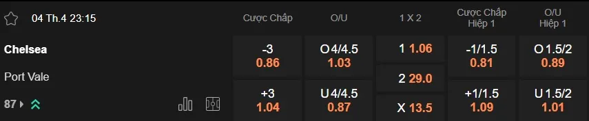 Kèo nhà cái Chelsea vs Port Vale