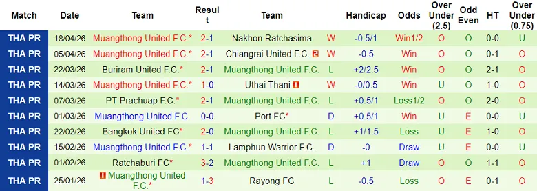 – Thống kê kết quả 10 trận gần nhất của Muangthong United