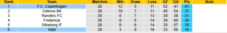 Thống kê phong độ, lịch sử đối đầu của Copenhagen vs Vejle