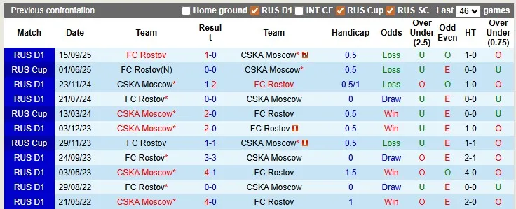 Có đến 5/6 trận vừa qua khi CSKA Moscow và Rostov chạm trán nhau, các kết quả đều chỉ dừng lại ở không quá 2 bàn được ghi. Khả năng tưng bừng bàn thắng trong trận đấu này cũng không được đánh giá cao.