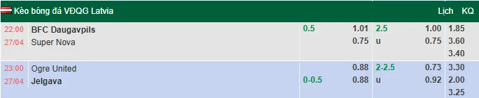 Nhận định bóng đá Daugavpils vs Super Nova, 22h00 ngày 27/4/2026 tại giải VĐQG Latvia. Dự đoán, phân tích tỷ lệ kèo châu Âu, châu Á trận Daugavpils đấu vs Super Nova từ các chuyên gia hàng đầu.