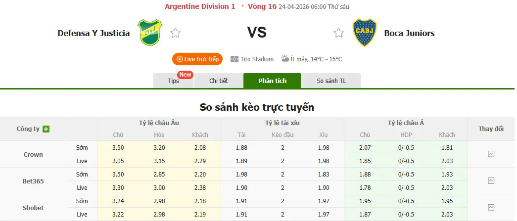 Nhận định soi kèo Defensa y Justicia vs Boca Juniors, 06h00 ngày 24/4 tại VĐQG Argentina. Phân tích tỷ lệ kèo, dự đoán kết quả Defensa y Justicia đấu với Boca Juniors từ tỷ lệ châu Âu, châu Á qua các chuyên gia hàng đầu.