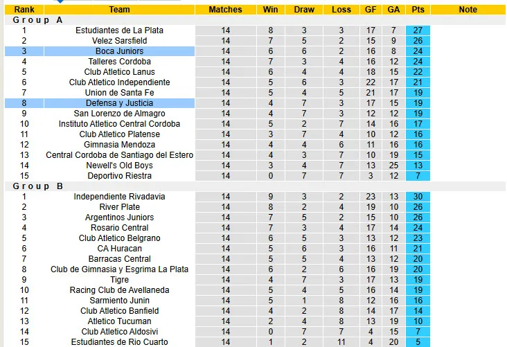 Cho tới trước vòng 16 giai đoạn Apertura của giải VĐQG Argentian 2026, Boca Juniors tạm thời đứng ở vị trí thứ 3 bảng A với 24 điểm. Cụ thể, họ có 6 trận thắng, hòa 6 và thua 2 lần sau 14 trận. Với nhiều người hâm mộ khó tính, đây là kết quả không đủ để hài lòng khi Boca Juniors đang sở hữu trong tay đội hình vượt trội so với phần lớn giải đấu. Nhưng nói đi cũng phải nói lại, đội quân của HLV Claudio Ubeda đang phải dàn trải sức lực cho cả mặt trận Copa Libertadores và việc vẫn duy trì trong nhóm đầu bảng A – vị trí có vé đi tiếp vào vòng knock out, vẫn là kết quả thành công.