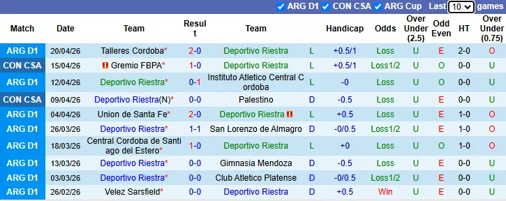Thống kê phong độ 10 trận gần nhất của Deportivo Riestra