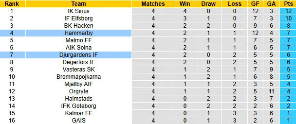 Phía đối diện, Hammarby đang xếp trên đối thủ 3 bậc ở vị trí thứ 4 với 7 điểm (2 thắng, 1 hòa, 1 thua). Đội bóng của HLV Kim Hellberg sở hữu hàng công cực kỳ bùng nổ với 12 bàn thắng chỉ sau 4 trận (trung bình 3 bàn/trận). Dù vừa bị Halmstad cầm chân đáng tiếc ở vòng trước, Hammarby vẫn nắm giữ lợi thế tâm lý cực lớn khi đối đầu Djurgardens.
