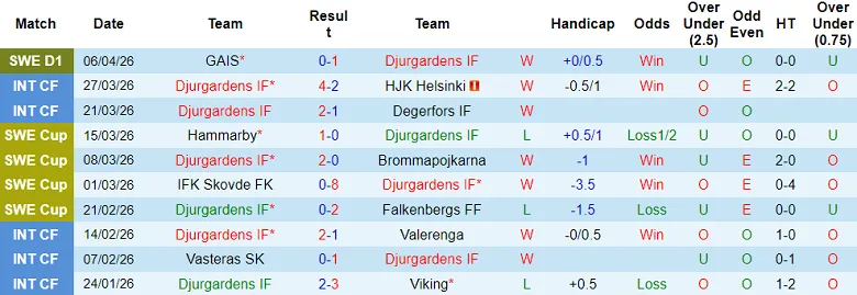 – Thống kê kết quả 10 trận gần nhất của Djurgardens
