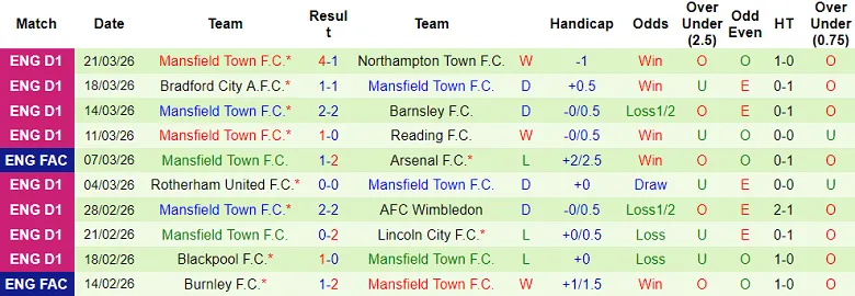 – Thống kê kết quả 10 trận gần nhất của Mansfield Town