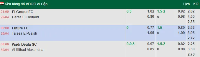 Nhận định bóng đá El Gouna vs Haras El Hodoud, 21h00 ngày 29/4/2026 tại giải VĐQG Ai Cập. Dự đoán, phân tích tỷ lệ kèo châu Âu, châu Á trận El Gouna đấu vs Haras El Hodoud từ các chuyên gia hàng đầu.