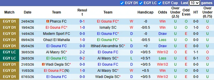 Thống kê phong độ 10 trận gần nhất của El Gouna