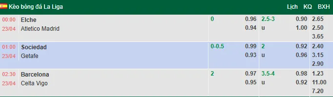 Cả 6 trận đối đầu gần đây giữa hai đội tại La Liga đều khép lại mà không có quá 2 bàn thắng. Hai trận gần nhất của Elche đều có tỷ số 1-0. Xỉu được xem là lựa chọn tối ưu ở trận đấu này.