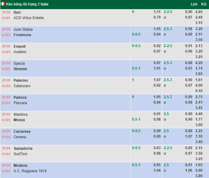 Nhà cái đang niêm yết mức kèo Empoli chấp -1/4 handicap ở trận đấu này. Đây là tỷ lệ tiềm ẩn nhiều rủi ro cho cửa trên. Empoli đã khiến các nhà đầu tư thất vọng khi thua kèo 8/10 trận gần nhất. Trong khi đó, Avellino đang là địa chỉ tin cậy với chuỗi 3 trận thắng kèo liên tiếp.
