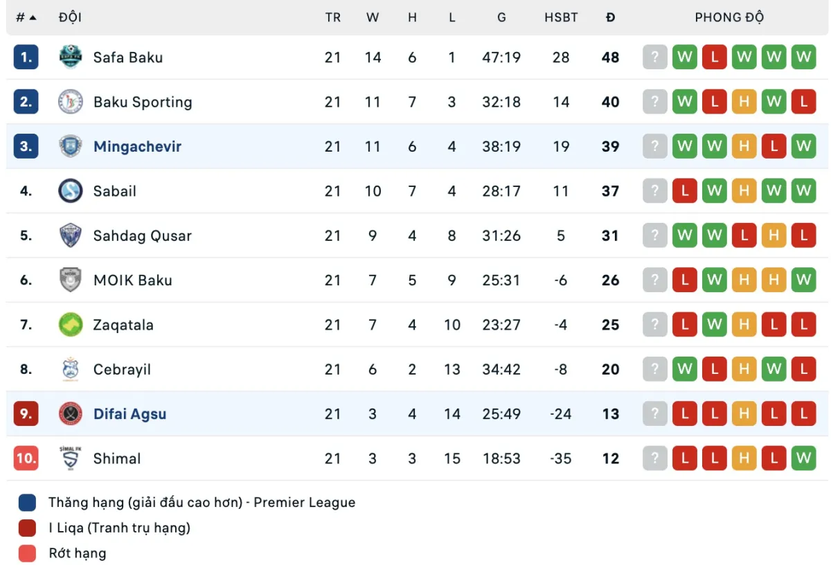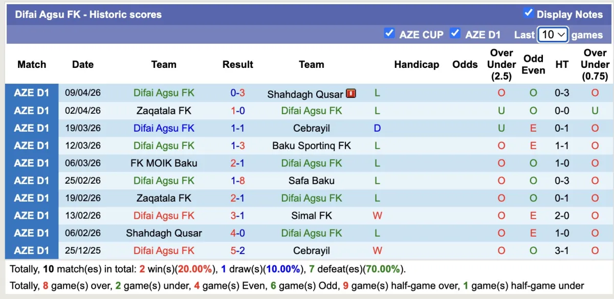 -Thống kê phong độ 10 trận đấu gần nhất của Difai Agsu FK
