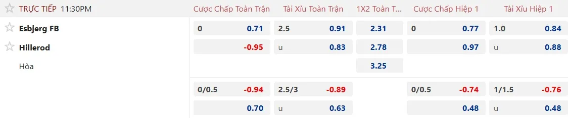 Esbjerg bước vào trận đấu này với thành tích toàn thắng kèo châu Á 3 trận liên tiếp gần đây. Nếu tính xa hơn, các cầu thủ chủ nhà thắng kèo châu Á 5/6 trận tính từ sau đợt nghỉ đông. Với Hillerod, trận đấu gần đây nhất chứng kiến các cầu thủ khách khiến nhà đầu tư ôm hận.