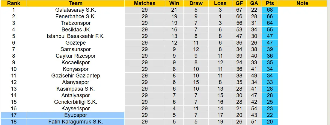 Trận đấu giữa Fatih Karagumruk và Eyupspor tại vòng 30 giải VĐQG Thổ Nhĩ Kỳ 2025/26 mang tầm quan trọng quyết định số phận của cả hai đội. Cả hai đều đang đối mặt với áp lực lớn khi đứng gần cuối bảng xếp hạng. Fatih Karagumruk đang đứng cuối bảng với 20 điểm sau 25 trận, kém nhóm an toàn tới 5 điểm. Trong khi đó, Eyupspor đứng ở vị trí áp chót với 22 điểm, nhưng cũng chỉ cách nhóm an toàn 3 điểm. Với chỉ 5 lượt trận còn lại, cả hai đội cần phải nỗ lực hết mình để trụ hạng.