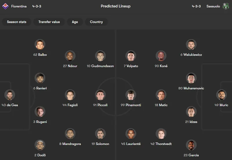 Dự đoán kqbd Fiorentina vs Sassuolo: 2-1