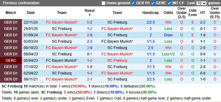 Thống kê phong độ, lịch sử đối đầu Freiburg vs Bayern Munich