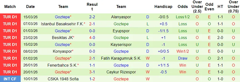 – Thống kê kết quả 10 trận gần nhất của Goztepe