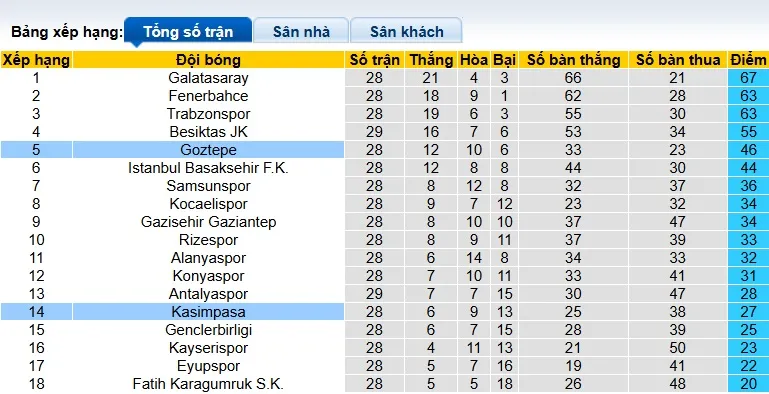 Chiến thắng 2-0 trước Genclerbirligi sau kỳ nghỉ quốc tế tháng 3 cho thấy thời gian nghỉ ngơi bắt buộc đã phát huy tác dụng kỳ diệu. Tuy nhiên, HLV Stanimir Stoilov đã chứng kiến đội bóng của mình thua Galatasaray với tỷ số 3-1 ở trận đấu bù gần nhất. Kết quả này khiến Goztepe vẫn đứng thứ 5 trên BXH với 46 điểm, kém đội đứng trên tới 9 điểm nhưng đá ít hơn 1 trận.