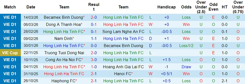 – Thống kê kết quả 10 trận gần nhất của Hà Tĩnh