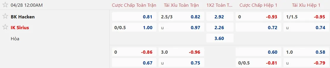 Kèo nhà cái Hacken vs Sirius