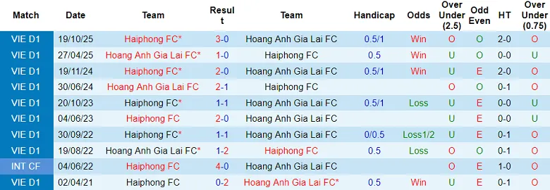 Hải Phòng thua tới 3/4 lần làm khách trước HAGL thuộc khuôn khổ V.League kể từ tháng 9/2019. Hải Phòng cũng thua kèo lẫn tỷ số toàn bộ 5 trận sân khách gần đây thuộc giải V.League, trong đó có 1 thất bại khi so tài cùng đội chủ nhà theo tỷ lệ 0:0. Hải Phòng rõ ràng khó trở thành phương án mang tới nhiều niềm tin.