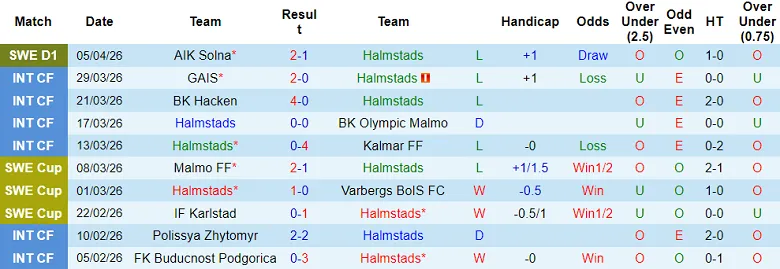 – Thống kê kết quả 10 trận gần nhất củaHalmstads