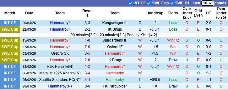 Thống kê phong độ 10 trận gần nhất của Hammarby