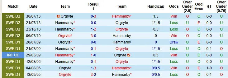 5/8 trận đối đầu vừa qua giữa Hammarby và Orgryte có không quá 2 bàn thắng được ghi mỗi trận. Trận đấu mới nhất của Hammarby cũng có tỷ số không quá 2 bàn/trận. 3 trận đấu mới đây của Orgryte có tỷ số xỉu 3 1/4.