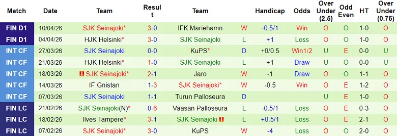 Trước khi so tài cùng HaPK, SJK Seinajoki hạ Mariehamn với cách biệt 3 bàn không gỡ (vòng 2 Veikkausliiga). Khả năng cao SJK Seinajoki sẽ thắng trận đấu diễn ra vào thứ Ba (14/4) qua đó vào vòng 4 Suomen Cup 2026.