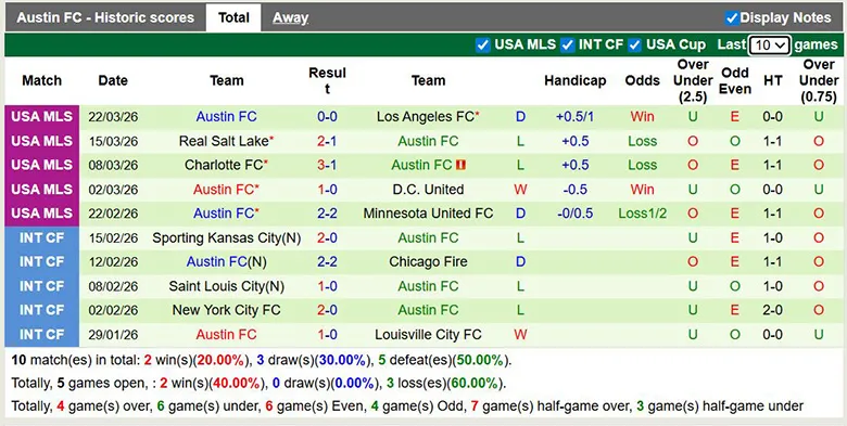 Về phía Austin, đội bóng này đang thi đấu không thực sự tốt. Trong 5 trận đầu mùa giải mới của MLS, Austin chỉ có 1 chiến thắng, 2 trận hòa và 2 trận thua. Phong độ trên sân khách của Austin cũng thực sự đáng ngại, khi họ thua cả 5 trận gần nhất trong 2 tháng qua.