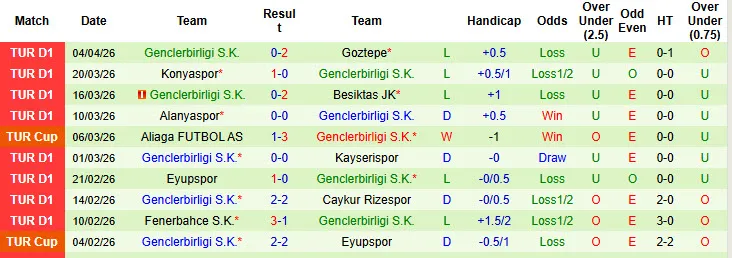Thống kê phong độ 10 trận đấu gần nhất của Genclerbirligi