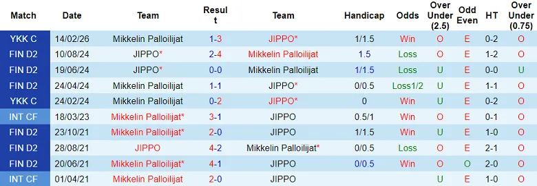 MP Mikkeli và JIPPO vốn chẳng lạ gì nhau. Vào tháng 2/2026, hai đội từng đấu với nhau tại Ykkosliigacup (giải đấu dành riêng cho các đội tham dự Ykkosliiga). Kết quả: JIPPO hạ MP Mikkeli với tỷ số 3-1 ngay trên sân khách.