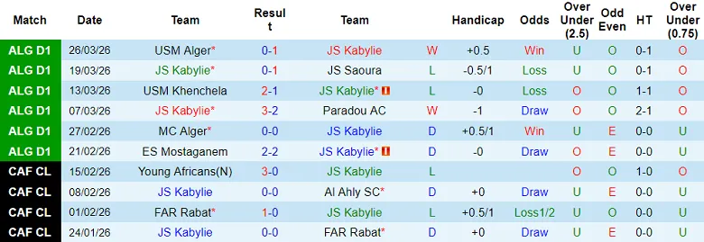 JS Kabylie thua theo Handicap 2/3 trận sân nhà vừa qua thuộc khuôn khổ Algerian Ligue 1, bao gồm cả 1 thất bại khi chấp 1 trái. Ben Aknoun thắng kèo tới 8/9 trận sân khách gần đây thuộc giải VĐQG Algeria, trong đó có 3 chiến thắng khi được chấp từ 1 trái trở lên. So với JS Kabylie thì Ben Aknoun hứa hẹn mang tới nhiều niềm tin hơn.