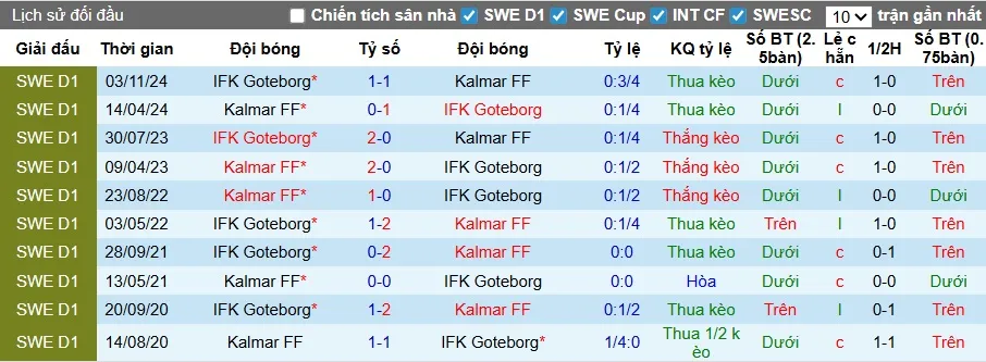 Lịch sử đối đầu Kalmar vs Goteborg