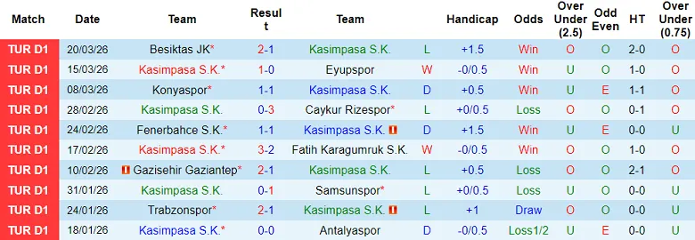 – Thống kê kết quả 10 trận gần nhất của Kasimpasa