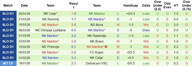 – Thống kê kết quả 10 trận gần nhất của Maribor