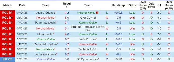 Phong độ gần đây của Korona Kielce mang đậm màu sắc thất thường. Trong 10 trận gần nhất, đội bóng này có 4 chiến thắng nhưng cũng phải nhận tới 5 thất bại. Những trận thắng như 3-0 trước Arka Gdynia hay 2-1 trước Termalica cho thấy khả năng bùng nổ vẫn tồn tại, nhưng chỉ cần một sai sót nhỏ là thế trận có thể đảo chiều ngay lập tức.Trên sân nhà, Korona Kielce cũng không tạo được sự ổn định rõ rệt khi thành tích thắng, hòa và thua khá cân bằng. Điều đó khiến lợi thế sân bãi không còn là điểm tựa quá chắc chắn.