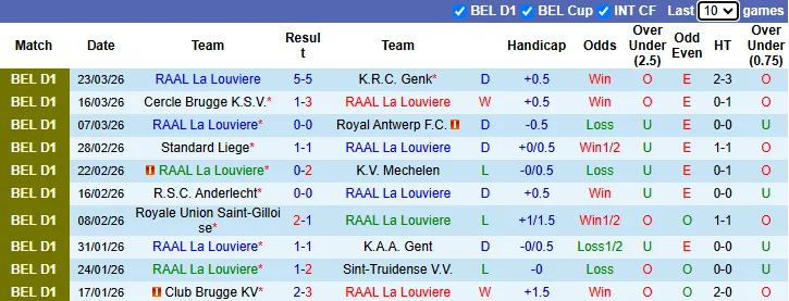 Thống kê phong độ 10 trận gần nhất của La Louviere