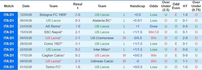 Lecce đang trải qua giai đoạn khó khăn nhất mùa giải. Trong 10 trận gần nhất, đội bóng này chỉ thắng 3 và thua tới 7 trận. Đáng lo hơn là chuỗi 4 thất bại liên tiếp gần đây, bao gồm trận thua 0-3 trước Atalanta và 0-2 trên sân Bologna.Hàng công thiếu sắc bén khiến Lecce thường rơi vào thế bị động. Khi đối thủ mở tỷ số trước, đội bóng này gần như không thể lật ngược thế trận. Áp lực trụ hạng vì thế ngày càng nặng nề khi mùa giải tiến gần đoạn cuối.