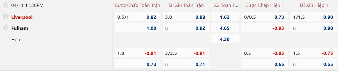 Các cầu thủ Liverpool đang có màn trình diễn rất đáng thất vọng, khi để thua kèo châu Á 5/6 trận đấu gần đây trên mọi đấu trường. Ở chiều ngược lại, Fulham thắng kèo châu Á 2 trận vừa qua, và nếu tính xa hơn họ thắng kèo 5/7 trận. Chưa kể, Fulham cũng toàn thắng kèo châu Á 3 trận đối đầu gần nhất.