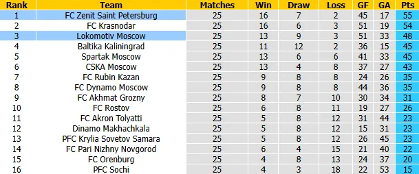 Thống kê phong độ, lịch sử đối đầu Lokomotiv Moscow vs Zenit