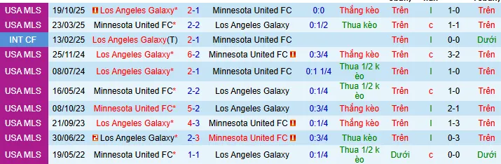 + LA Galaxy thắng 7 thua 3 trong 10 trận đối đầu gần nhất với Minnesota theo kèo châu Á.