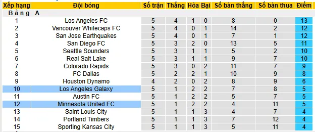 Thống kê phong độ, lịch sử đối đầu của Los Angeles Galaxy vs Minnesota United